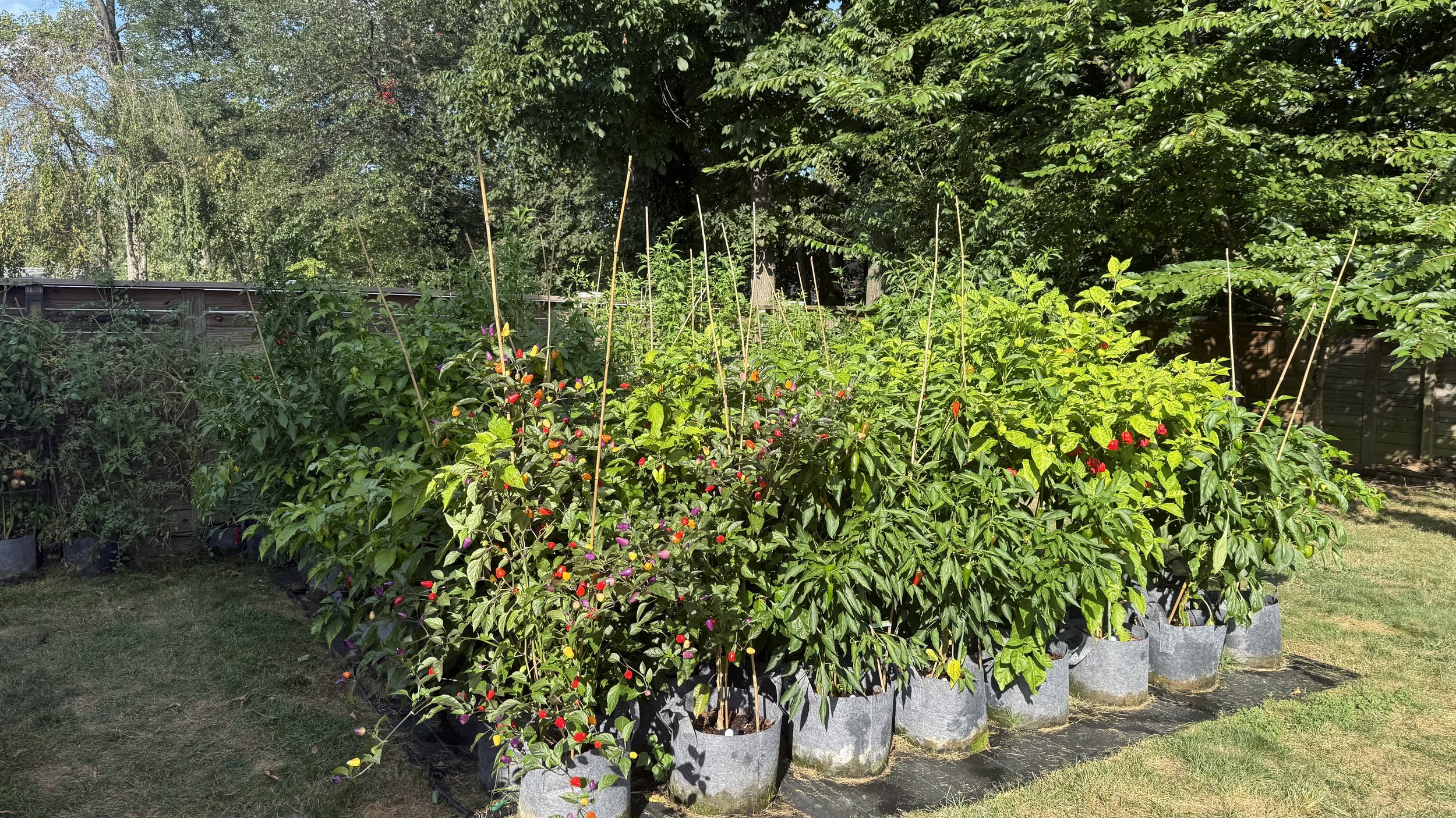 Our garden isn’t just a source of peppers and produce — it’s a small, sustainable ecosystem. We reuse soil whenever possible, enriching it naturally instead of replacing it each season. Rain barrels collect water from our rooftop, helping us conserve resources while keeping our plants hydrated with nature’s own supply. Targeted drip irrigation ensures that every drop goes exactly where it’s needed, reducing waste and promoting healthy root growth. When a plant’s season ends, it doesn’t go to waste — it’s composted and returned to the soil to nurture next year’s crops. Every jar and bottle that comes from our backyard represents not just great taste, but a commitment to growing responsibly.